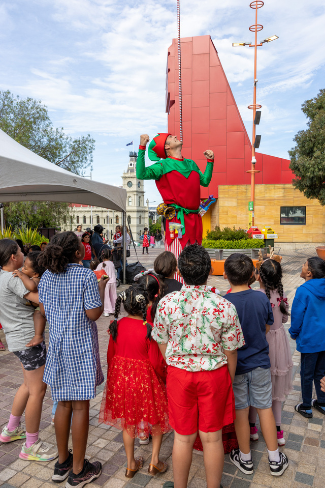 Meanwhile, Melbourne Ballet School performers and an elf-on-stilts elevated the festive fun.