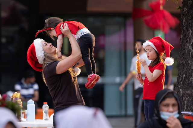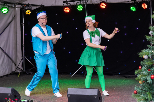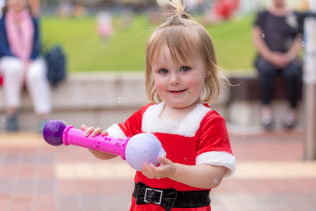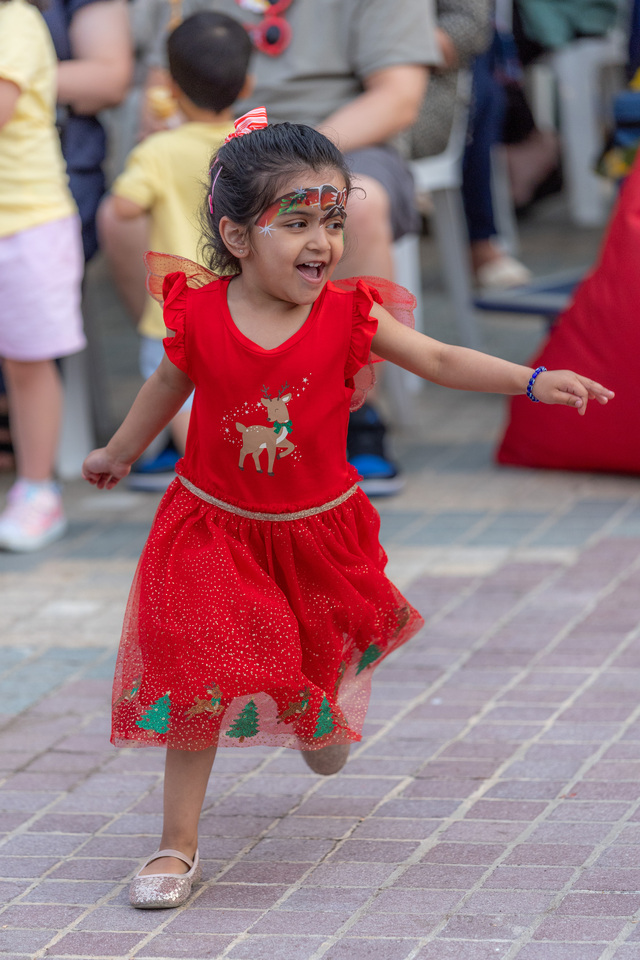 The square was decked with decorations and activities, including a towering Christmas tree, reindeer mascot, market stalls, facepainting and a photobooth.