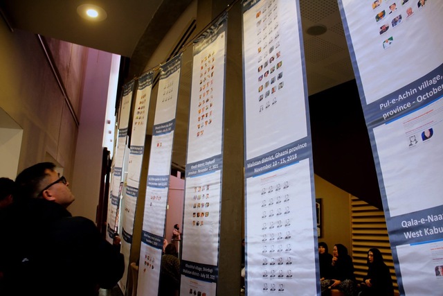 Supported by 14 community organisations and groups, Bolaq Analyst Network showcased long banners which displayed the names and photographs of the Hazaras martyred in Afghanistan and Pakistan from the 1990s to 2025.