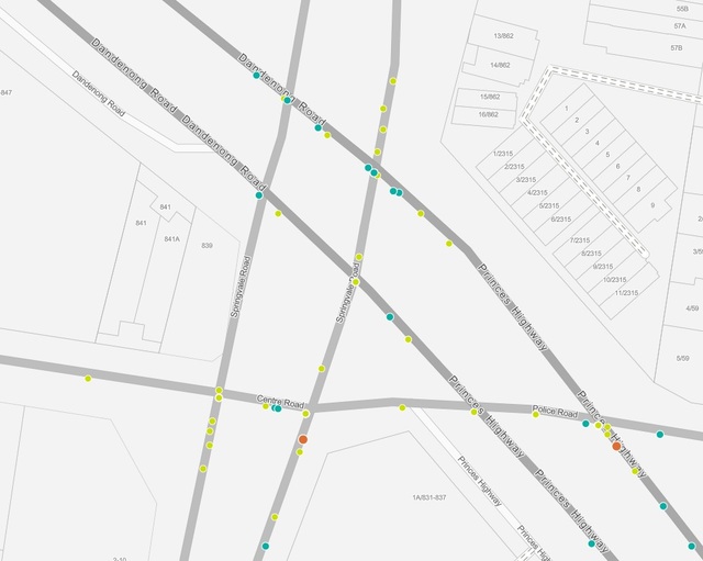 In its report, RACV’s suggested short-term solution is to review linemarking and signage to simplify the intersection, particularly the left turn slip/service lane from Princes Highway to Springvale Road southbound.
