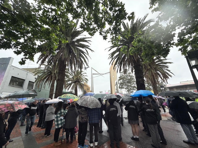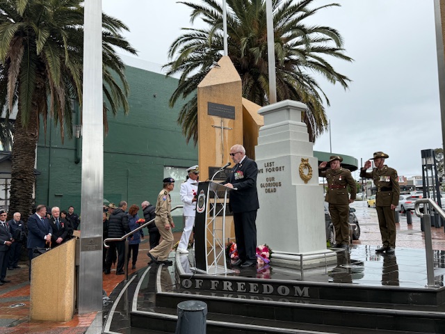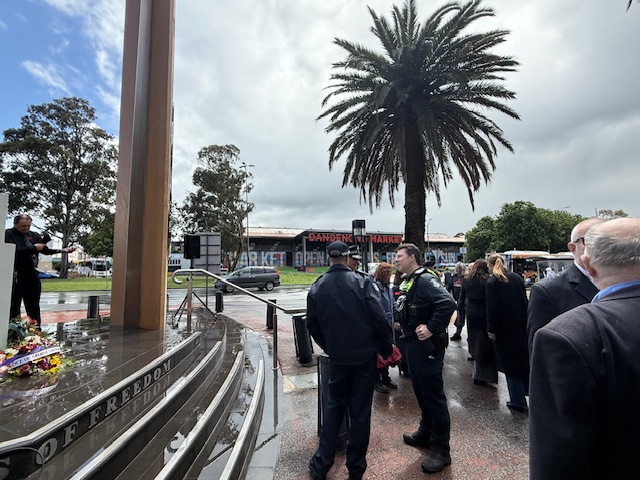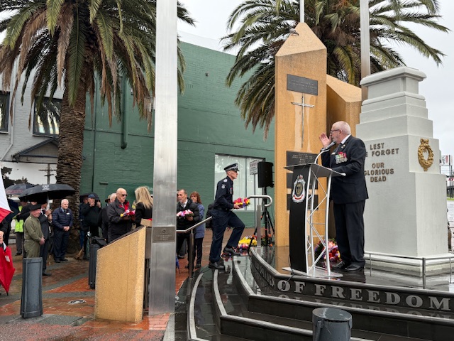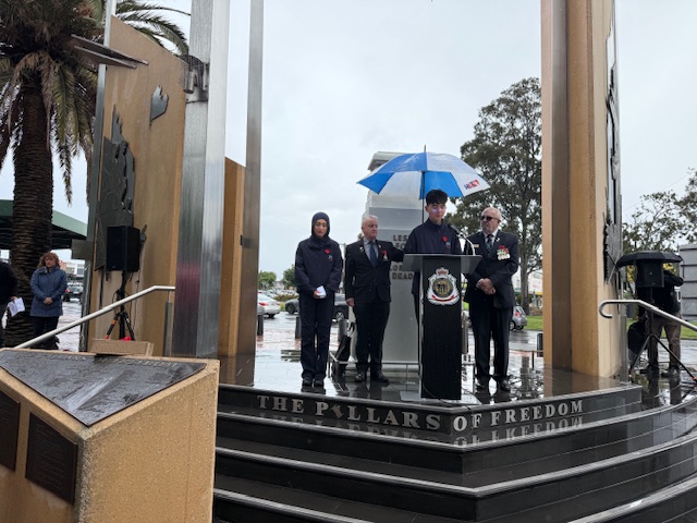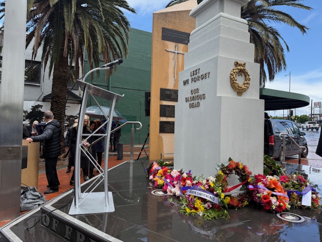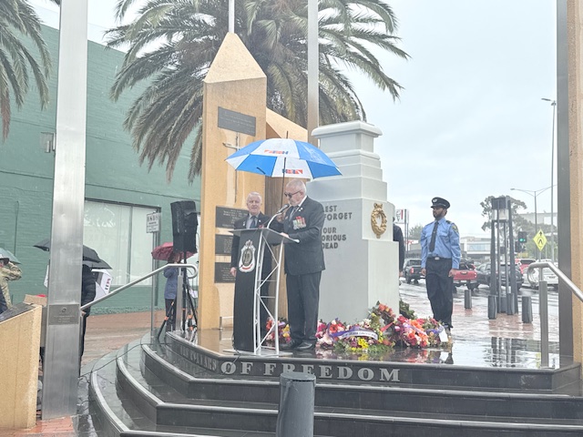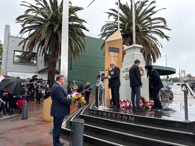 As the rain teamed down heavily, Greater Dandenong community stood firmly at the Pillars of Freedom to remember those who died serving our country.