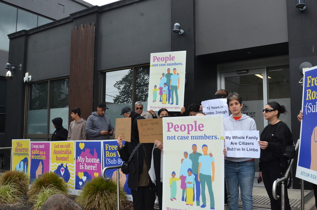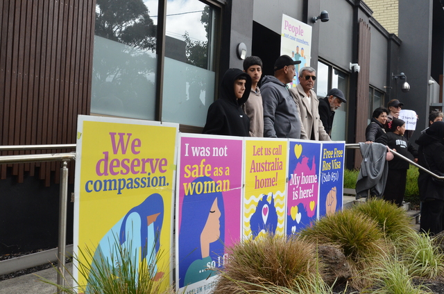 A group of refugees and advocates has staged a peaceful protest outside Citizenship and Multicultural Affairs assistant minister Julian Hill’s electorate office in Dandenong.