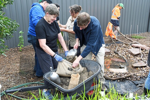 “It has been a hope of ours,” she said. “Thanks to Anne and Gayle Savige from the Australian Plants Society – Cardinia Region we had an offer from David De Angelis to run a workshop to build the pond.”