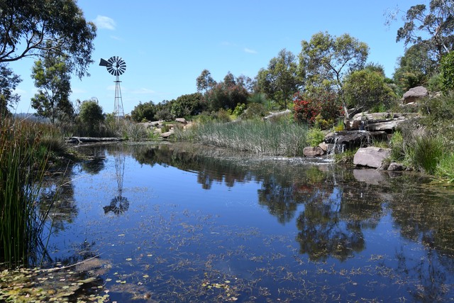 What was once a leaking dam is now restored and connected to a creek that runs through the property, flowing through a billabong and a waterfall.