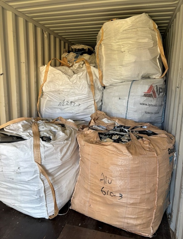 The shipment included large quantities of crushed hard drives, printed circuit boards, solar inverters, lithium-ion batteries, electrical power sources and old transmitters.