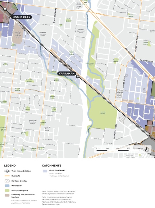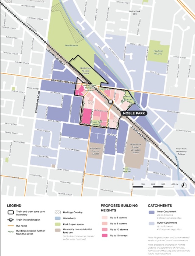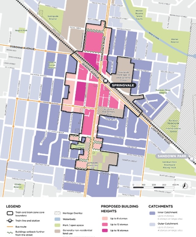 It seems that it prefers Greater Dandenong Council’s structure plans of 12-storey maximums (Springvale) and up to 6 storeys (Noble Park), rather than the 16-storey and 12-storey heights as part of the Government’s draft train-and-tram activity centres.