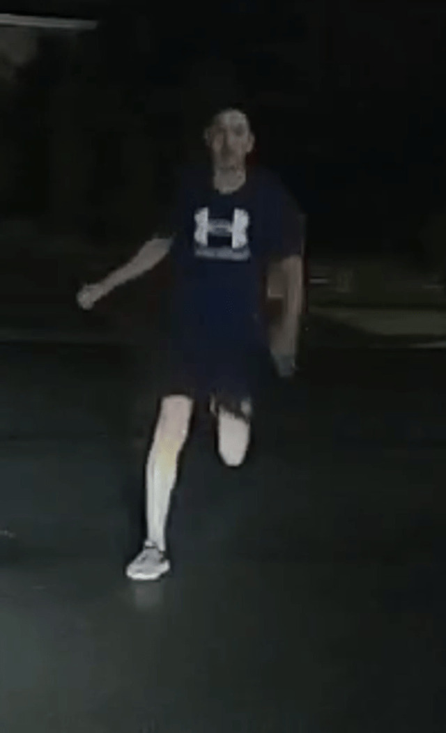 Male one is perceived to be Mediterranean/Middle Eastern in appearance, approximately 18-25 years old, with short, dark hair, wearing grey runners, black shorts, and a dark coloured ‘Under Armour’ t-shirt.